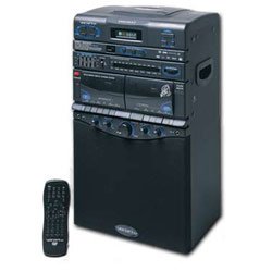 - Multiformat karaoke system with DVD/CD player, AM/FM tuner, and dual cassette deck